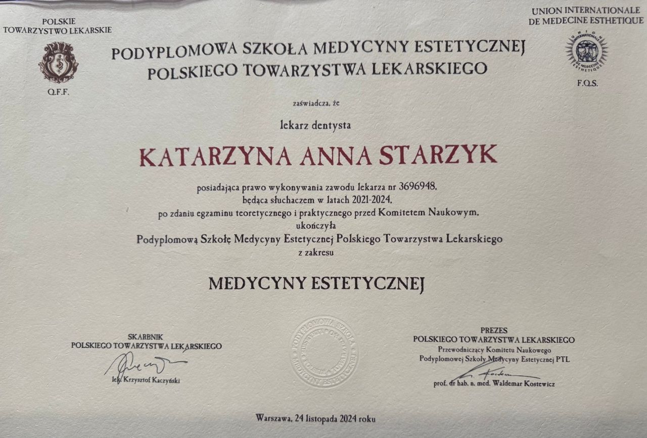 Pani doktor Starzyk bardzo dokładnie zebrała wywiad, zapytała o moje oczekiwania, a potem wszystko zaplanowała krok po kroku. Leczenie przebiegło spokojnie, w przyjaznej atmosferze. Jestem bardzo zadowolona – takiego podejścia szukałam od dawna.