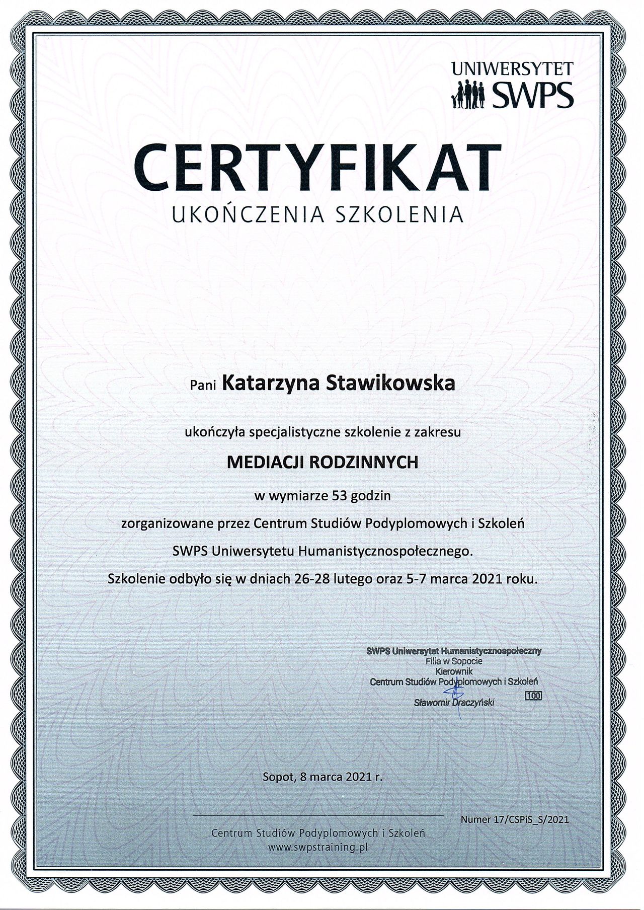Zaświadczenie takie jest również pomocy w sytuacji, kiedy jesteście Państwo uczestnikami sprawy rodzinnej w sądzie - dotyczącej rozwodu, opieki nad dziećmi, władzy rodzicielskiej, czy też przygotowujecie się Państwo do badania OZSS.