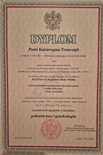 Bardzo dziękuję Pani doktor za empatię, szczegółowe badanie i wyjaśnienia. Czułam się bardzo komfortowo, a to dla mnie niezmiernie ważne. Dziękuję za znalezienie przyczyny moich dolegliwości.