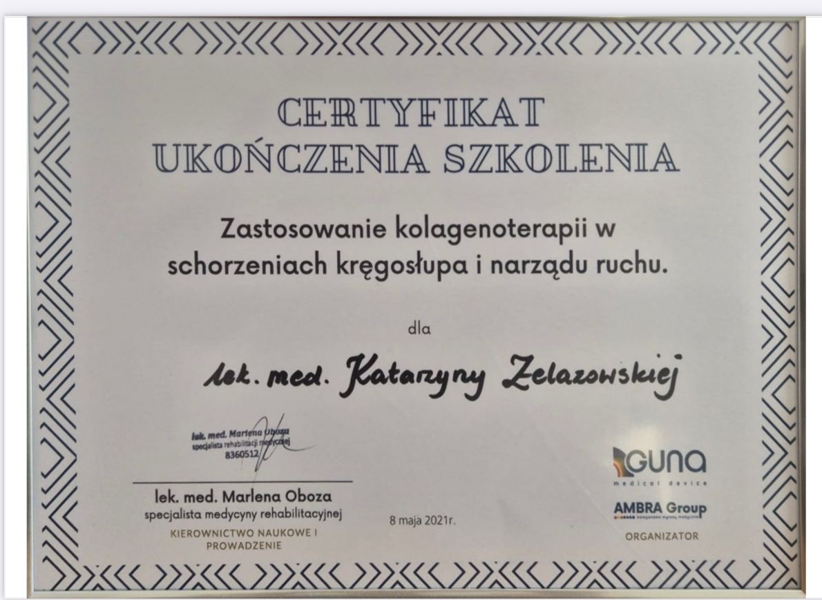 Jestem absolwentką Wydziału Lekarskiego UM w Lublinie. Ukończyłam szkolenie specjalizacyjne z chorób wewnętrznych w 2016r oraz szkolenie specjalizacyjne z zakresu reumatologii w 2019r. Posiadam ponad 10-letnie doświadczenie zdobyte w oddziałach klinicznych i poradniach reumatologicznych. Przyjmuję pacjentów dorosłych. Stale poszerzam swoją wiedzę, uczestnicząc w licznych szkoleniach i konferencja z zakresu reumatologii.
