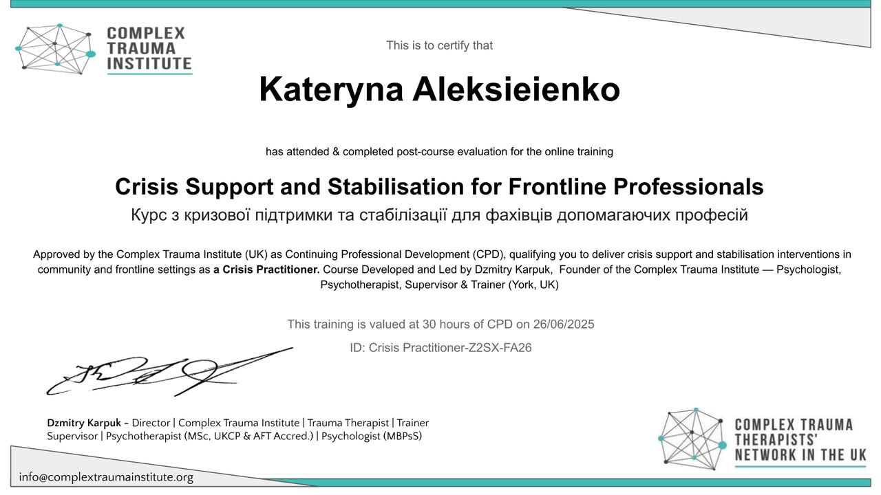 W jakich językach konsultuje Kateryna Aleksieienko?Języki, których używa Kateryna Aleksieienko to rosyjski, ukraiński, polski.