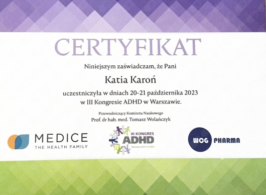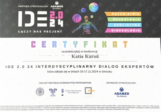 Czy Katia Karoń przyjmuje online, bez konieczności pojawiania się w placówce?Tak, Katia Karoń oferuje konsultacje online. Wybierz opcję „konsultacja online” przy umawianiu wizyty, a zobaczysz dostępne terminy.