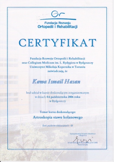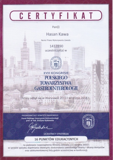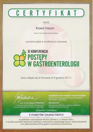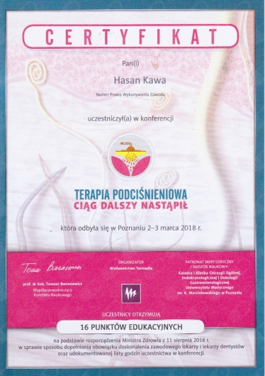 Przez cały okres swojej pracy zawodowej brałem udział w licznych kursach i stażach udoskonalających, co zostało docenione przez pacjentów a wyrazem tego jest przyznanie mi Laury Pacjenta na poziomie krajowym.
