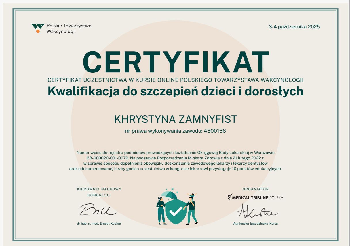 Jesteś już po wizycie u lek. Khrystyna Zamnyfist? Daj znać, co myślisz. Inni pacjenci będą wdzięczni za pomoc w wyborze najlepszego specjalisty.
