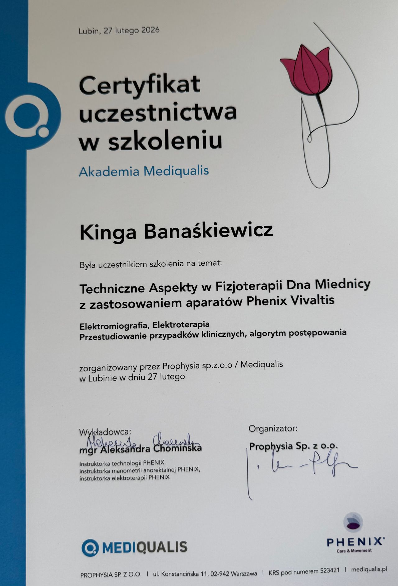 Jaki jest zakres porad oferowanych przez Kinga Banaśkiewicz?Kinga Banaśkiewicz to fizjoterapeuta. Na podstawie swojego doświadczenia i wykształcenia Kinga Banaśkiewicz oferuje usługi takie jak: fizjoterapia uroginekologiczna, INDIBA terapia, fizjoterapia kobiet w ciąży / fizjoterapia okołoporodowa, terapia blizn, kinesiotaping, przygotowanie do porodu, Fizjoterapia endometriozy, rehabilitacja onkologiczna, fizjoterapia estetyczna, Trening medyczny.