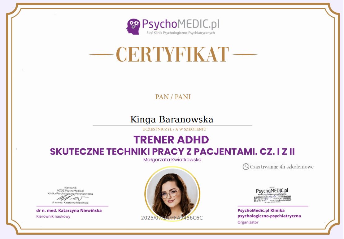• Kinga Baranowska Psycholog, Diagnosta ADHD • Konsultacja psychologiczna online •