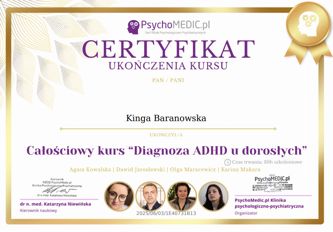 • Kinga Baranowska Psycholog, Diagnosta ADHD • diagnoza ADHD dla dorosłych •
