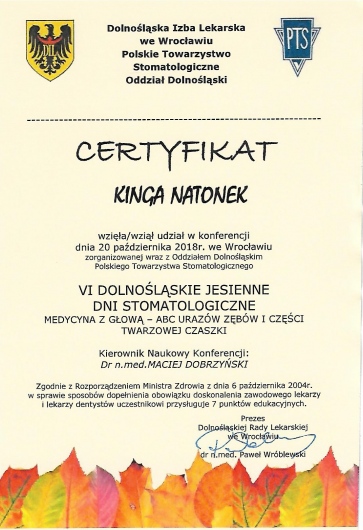 Jednocześnie rozwijam swoją wiedze i umiejętności w zakresie ortodoncji pod opieką dr n. med Jana Łyczka. Należę do Polskiego Towarzystwa Ortodontycznego.