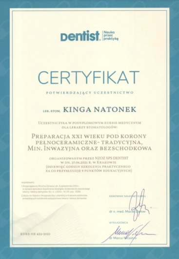 Zostanie lekarzem dentystą było moim marzeniem od najmłodszych lat. Dlatego podczas pracy spełniam swoją pasję.