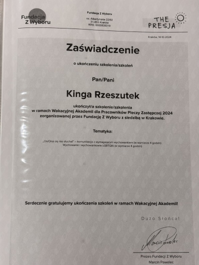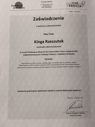 Pani Kinga buduje przyjazną i bezpieczną atmosferę. Czułam się naprawdę dobrze wysłuchana.