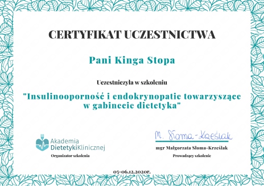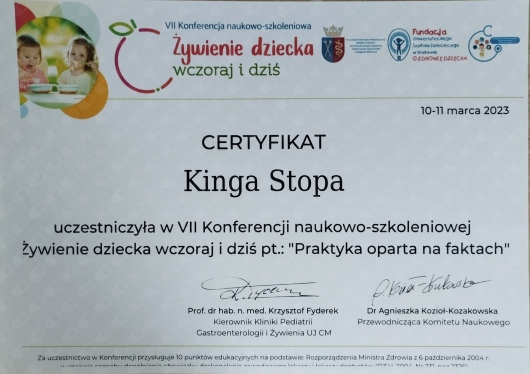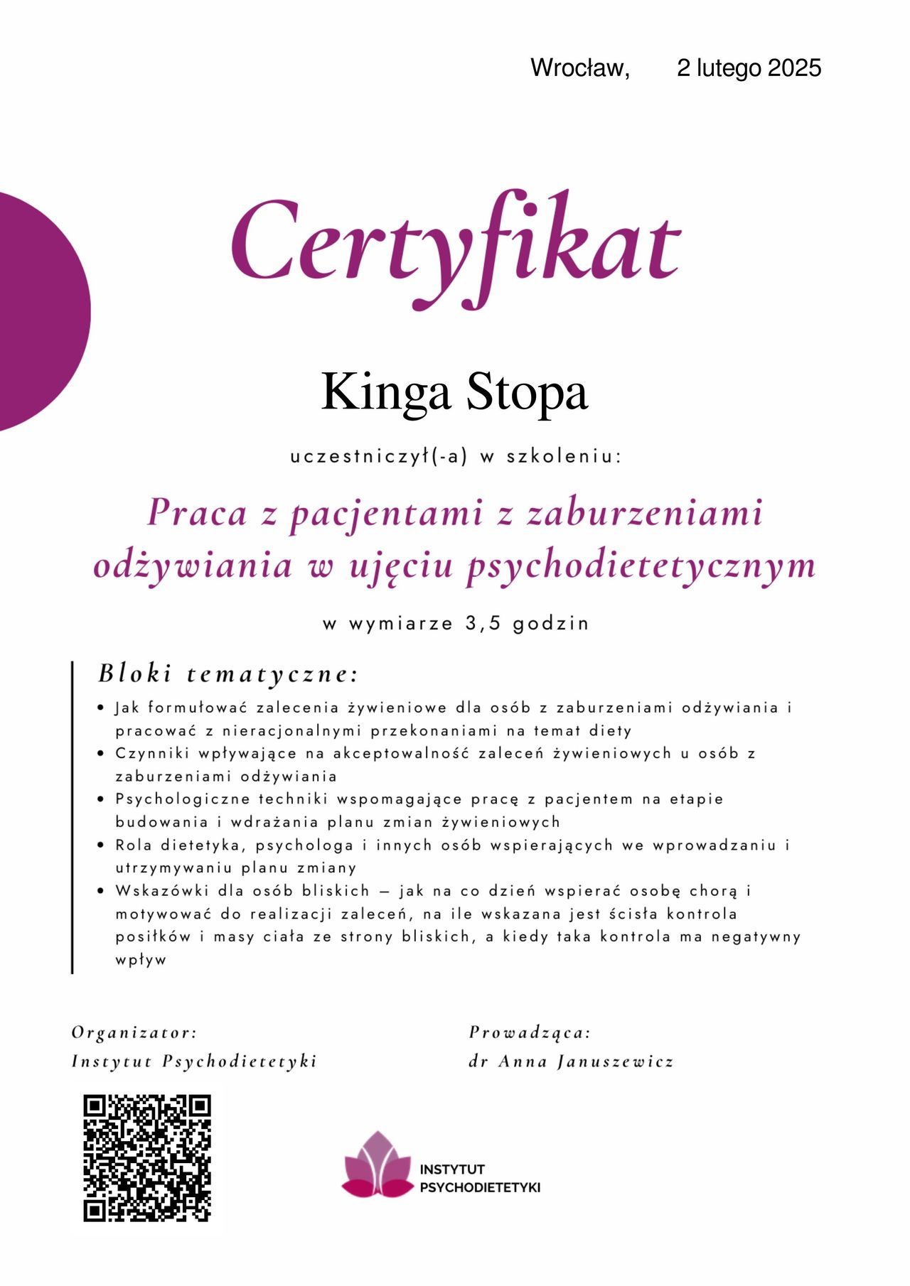 Rozpoczęłam studia podyplomowe Psychodietetyka pediatryczna na WSB Merito we Wrocławiu. Chcę się rozwijać i jeszcze lepiej wspierać małych pacjentów – nie tylko w walce z nadwagą i otyłością, ale także w trudnych wyzwaniach, takich jak zaburzenia odżywiania, ARFID czy neofobia żywieniowa.