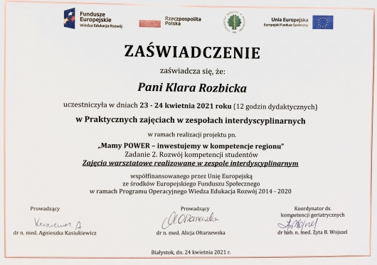- praktyczne zajęcia w zespołach interdyscyplinarnych w ramach projektu „Mamy POWER - inwestujemy w kompetencje regionu”
