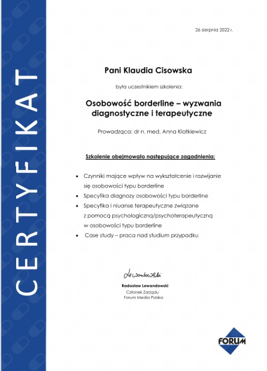 Byłem u pani Klaudii na diagnozie ADHD, wszystko super sprawnie poszło, Pani Klaudia bardzo profesjonalnie do tematu podeszła, odpowiadała, na zadane pytania oraz udzielała nieodzownych rad co dalej. Na minus jedna rzecz, cena, jest zaporowa i dotatkowa płatność za wydanie opinii to trochę za dużo.