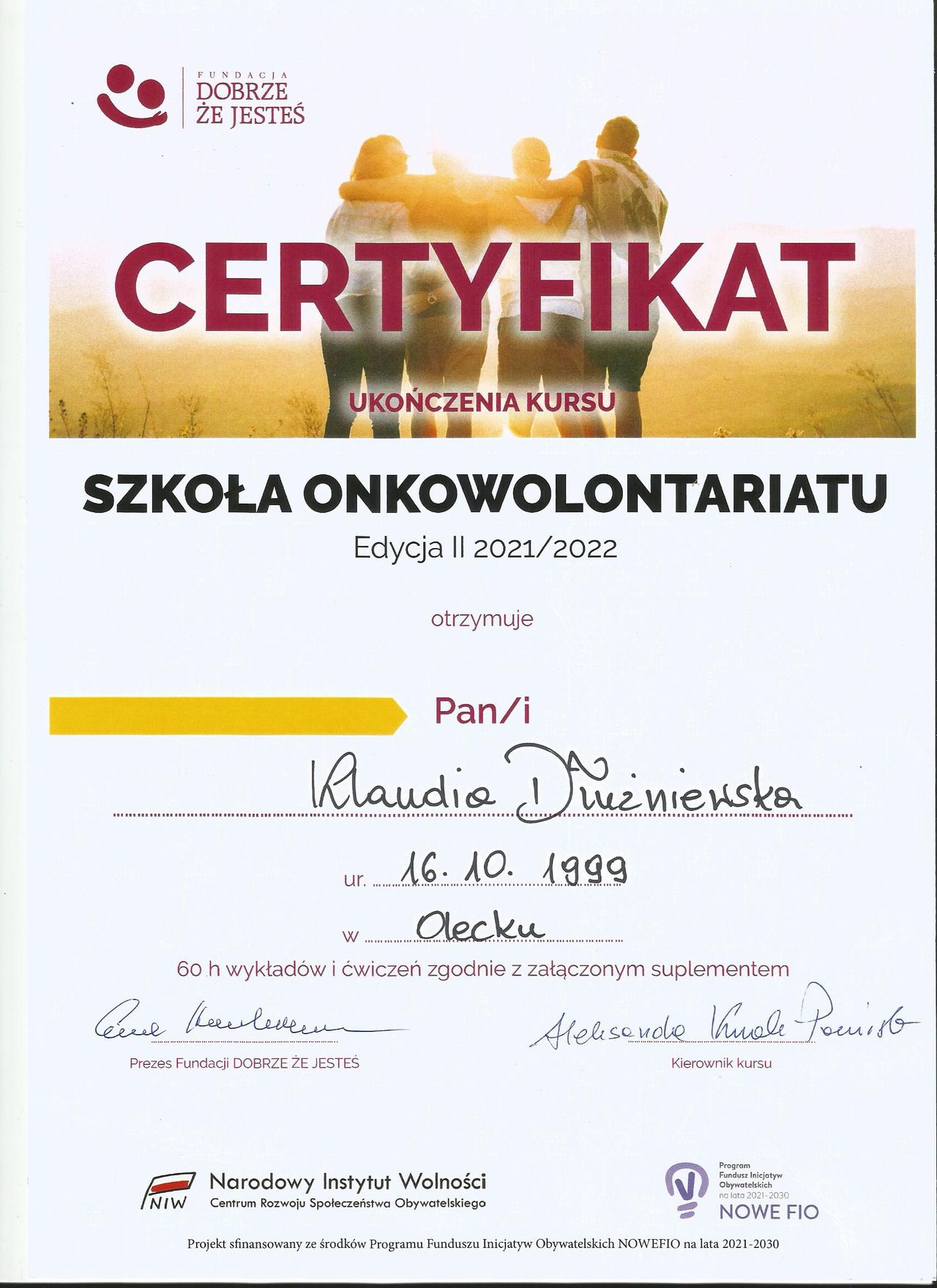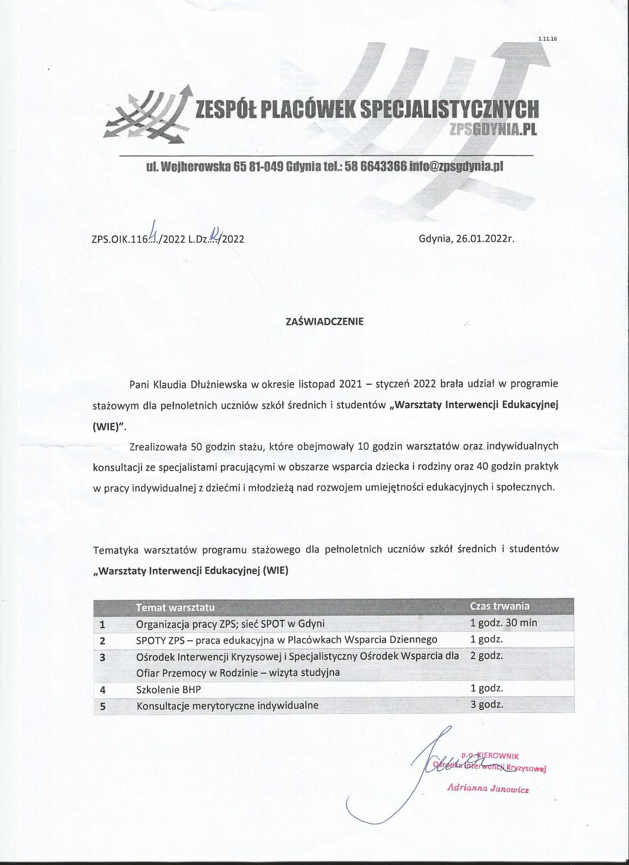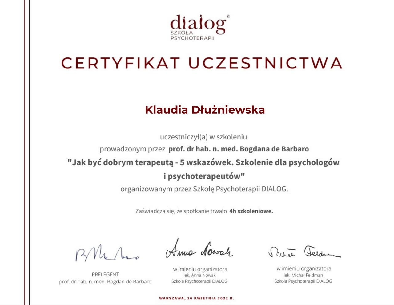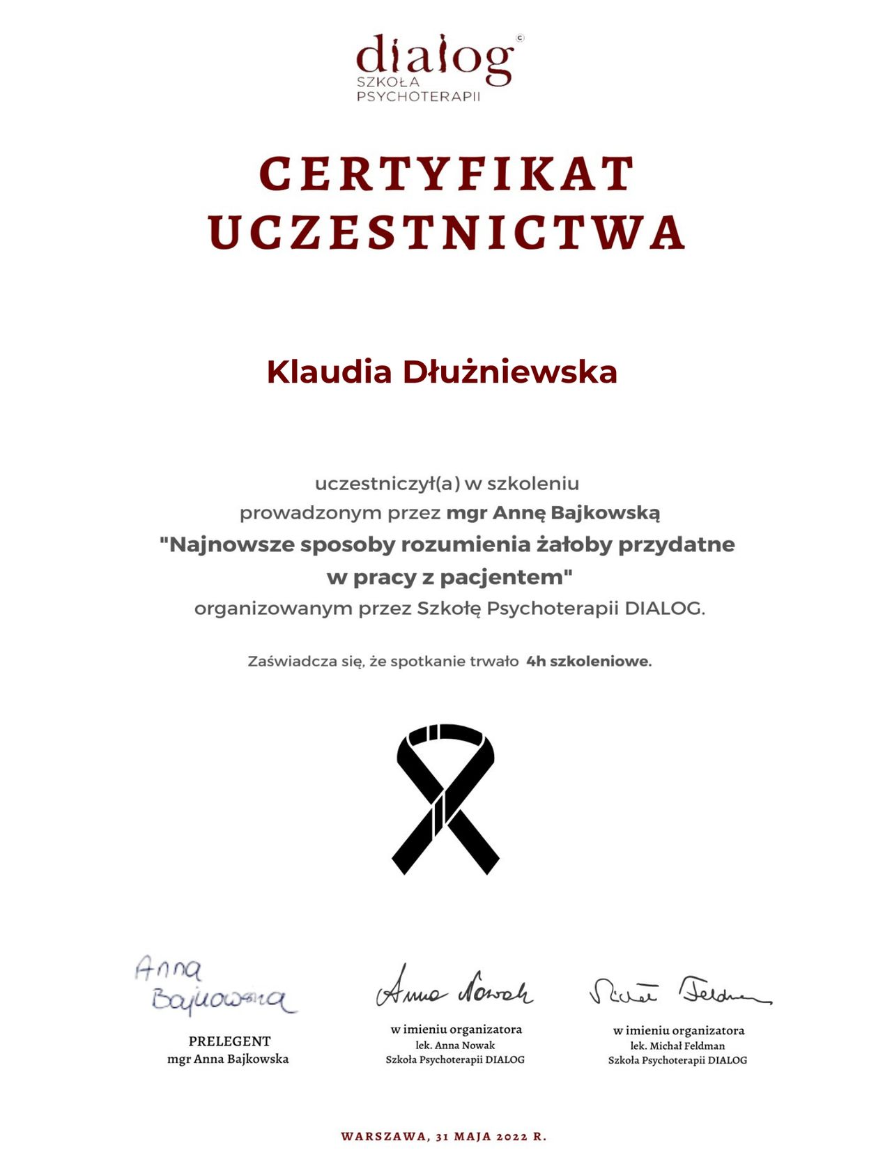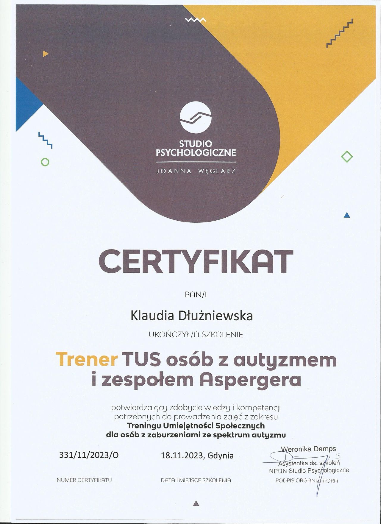 Staram się dbać o regularne podnoszenie swoich kompetencji poprzez udział w licznych szkoleniach z zakresu zdrowia psychicznego.