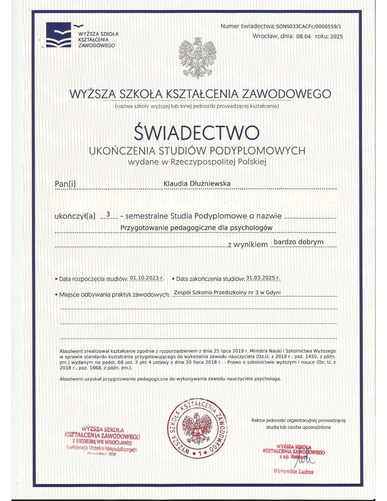 Gdzie Klaudia Dłużniewska ma swój gabinet?Klaudia Dłużniewska przyjmuje pod adresem: