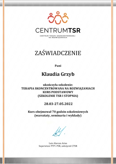 Nieustannie staram się rozwijać swoje kompetencję poprzez uczestnictwo w szkoleniach, ponieważ uważam, że jest to niezwykle istotne w pracy terapeutycznej. Dodatkowo biorę czynny udział w konferencjach naukowych. Swoją pracę poddaję regularnej superwizji.