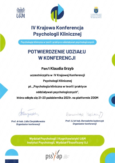• Gabinet prywatny Klaudia Grzyb • Konsultacja psychologiczna •