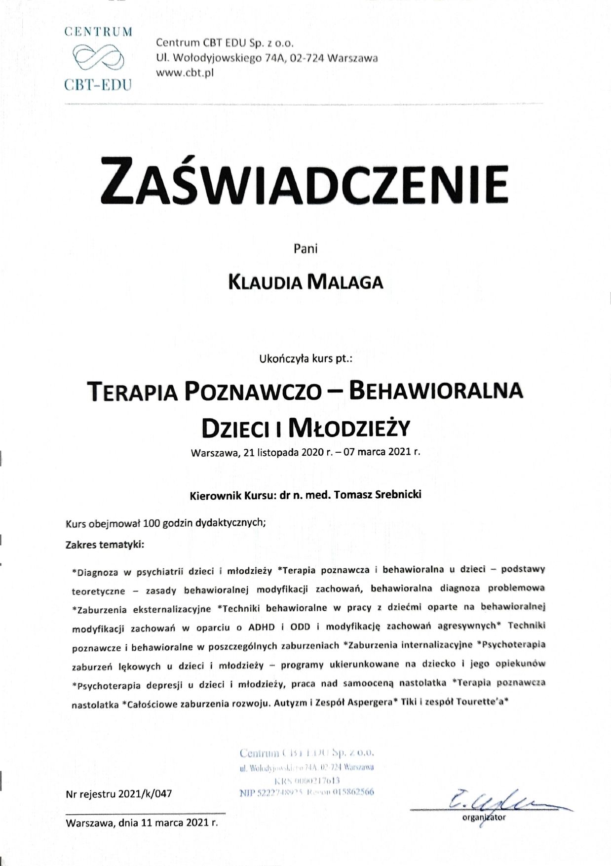 mgr Klaudia Malaga