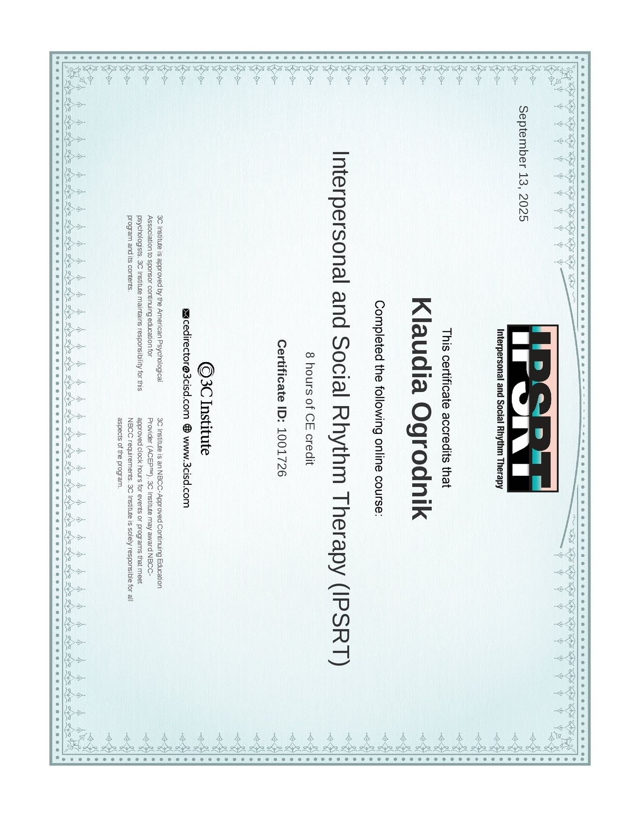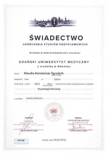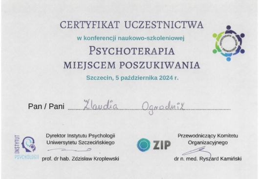 Obecnie poszerzam swoje kompetencje na 5-letnim akredytowanym szkoleniu psychoterapeutycznym w nurcie systemowo-ericksonowskim.
