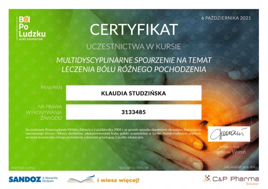 Chętnie uczestniczę w szkoleniach i konferencjach, by cały czas aktualizować i pogłębiać swoją wiedzę.