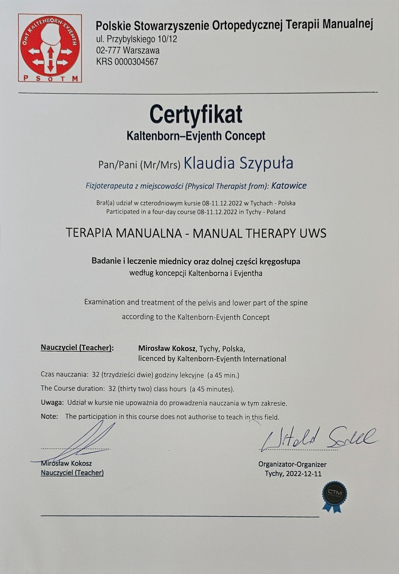 Niezwykle empatyczna fizjoterapeutka, osoba w zawodzie z pasji i powołania, zaangażowana w dobrobyt pacjenta. Trafiłam do Pani Klaudii z blizną po cesarce I byłam zaskoczona szybkimi rezultatami terapii przez nią przeprowadzonej. Po każdej wizycie widziałam wyraźną poprawę stanu blizny i czucia w jej okolicach. Pełen profesjonalizm.