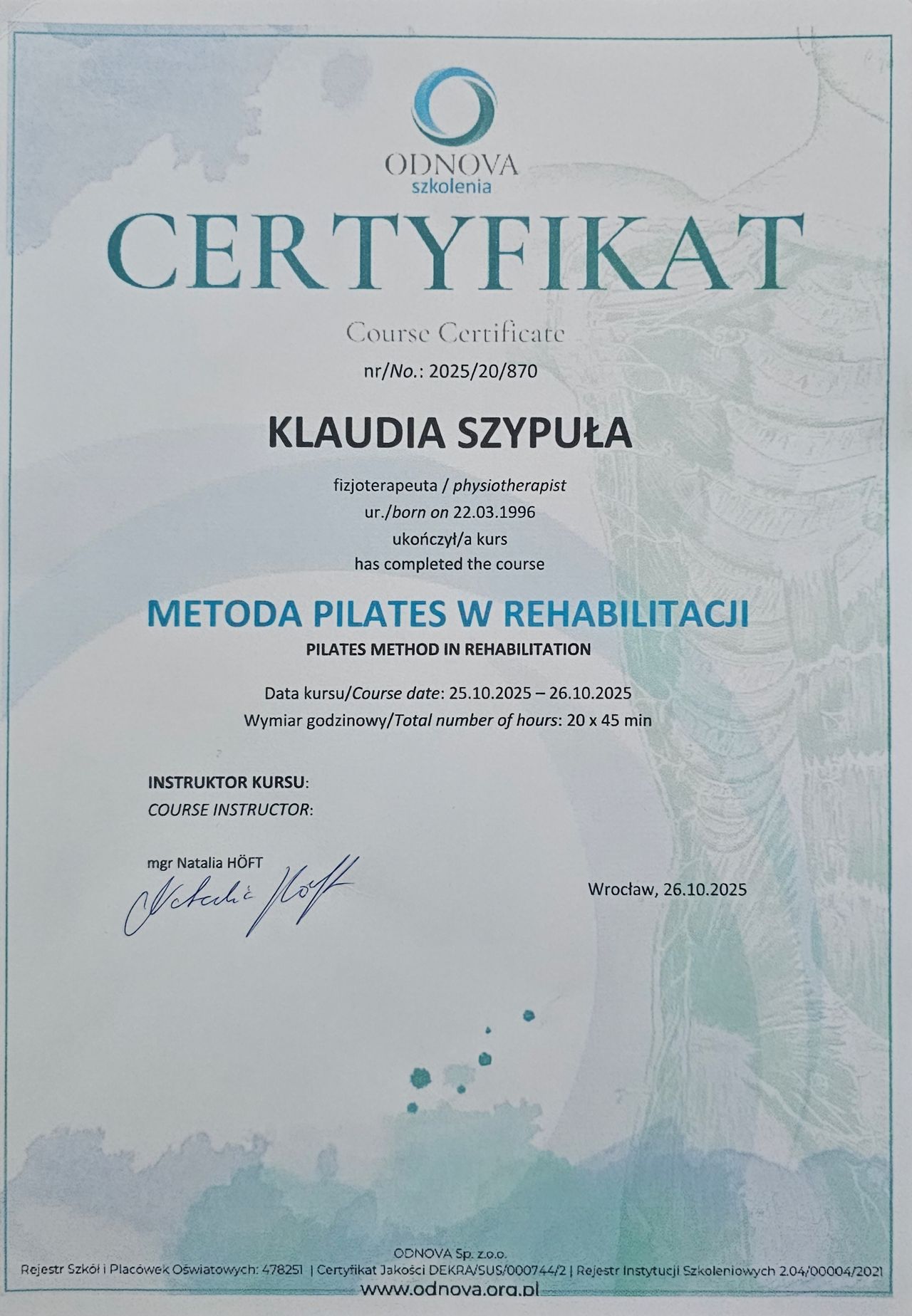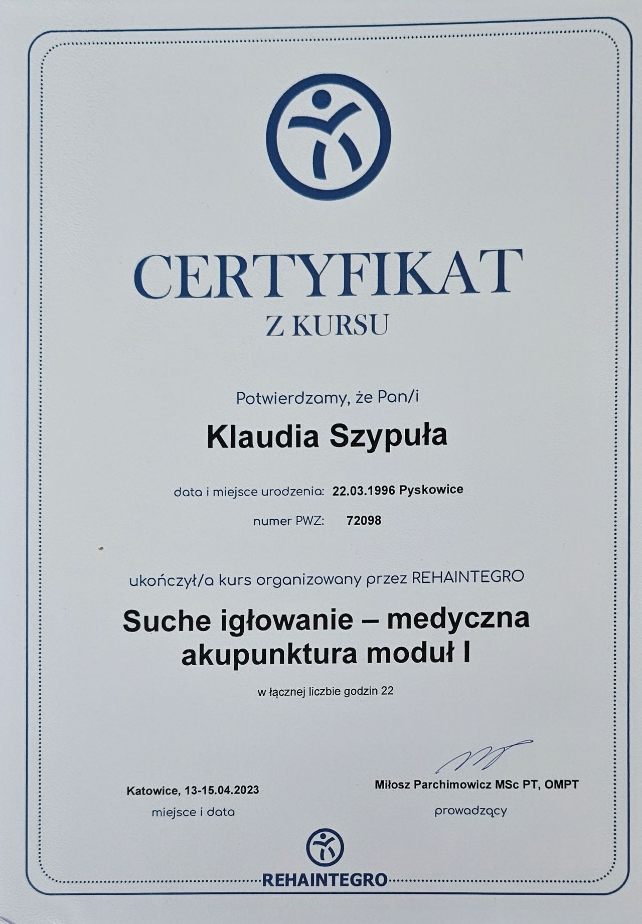 Miałam przyjemność korzystać z usług fizjoterapeutki Klaudii i z pełnym przekonaniem mogę ją polecić każdemu, kto szuka profesjonalnej, zaangażowanej i empatycznej osoby. Klaudia ma ogromną wiedzę i doświadczenie, które w połączeniu z indywidualnym podejściem do pacjenta przynoszą naprawdę świetne rezultaty. Już po kilku wizytach zauważyłam znaczną poprawę, a każda sesja przebiegała w miłej, komfortowej atmosferze. Widać, że Klaudia wykonuje swoją pracę z pasją i pełnym zaangażowaniem. Zdecydowanie jedna z najlepszych specjalistek, na jakie trafiłam!