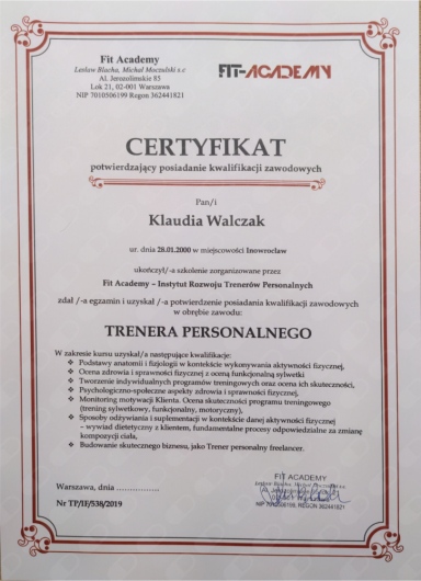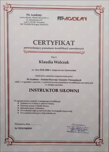 · Trener personalny i instruktor siłowni (Fit Academy)