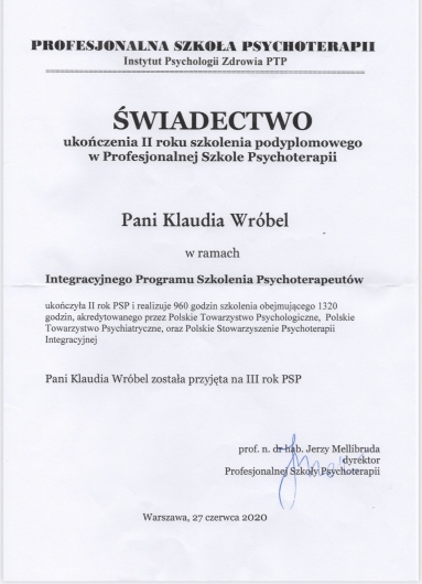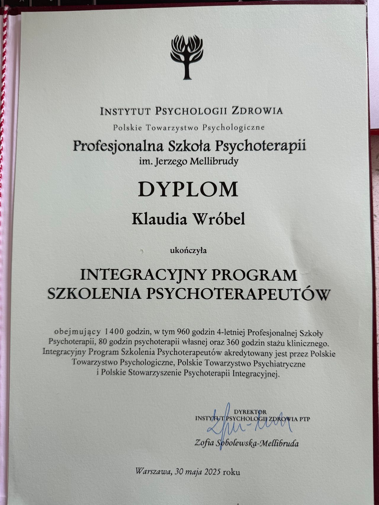 I am a clinical psychologist, having graduated from the University of Warsaw. I am also a psychotherapist with training from the Gestalt Psychology Institute in Krakow, and currently enhancing my expertise during PhD program at the Institute of Health Psychology with a focus in Integrative Psychotherapy