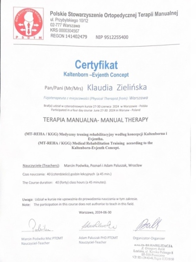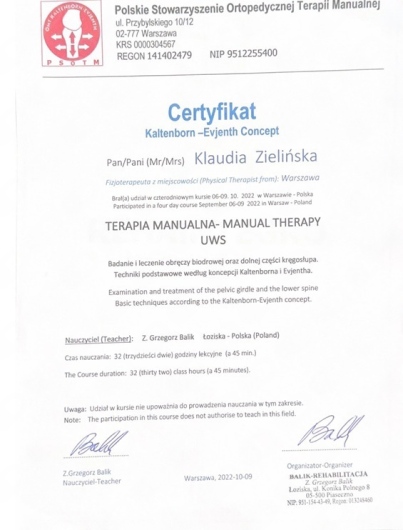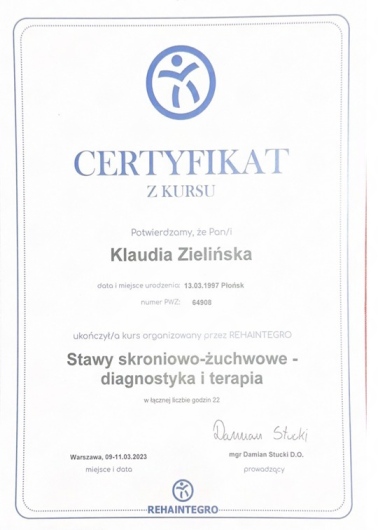 p. Klaudia jest znakomitą fizjoterapeutką oraz nadzwyczaj miłym i ciepłym człowiekiem.