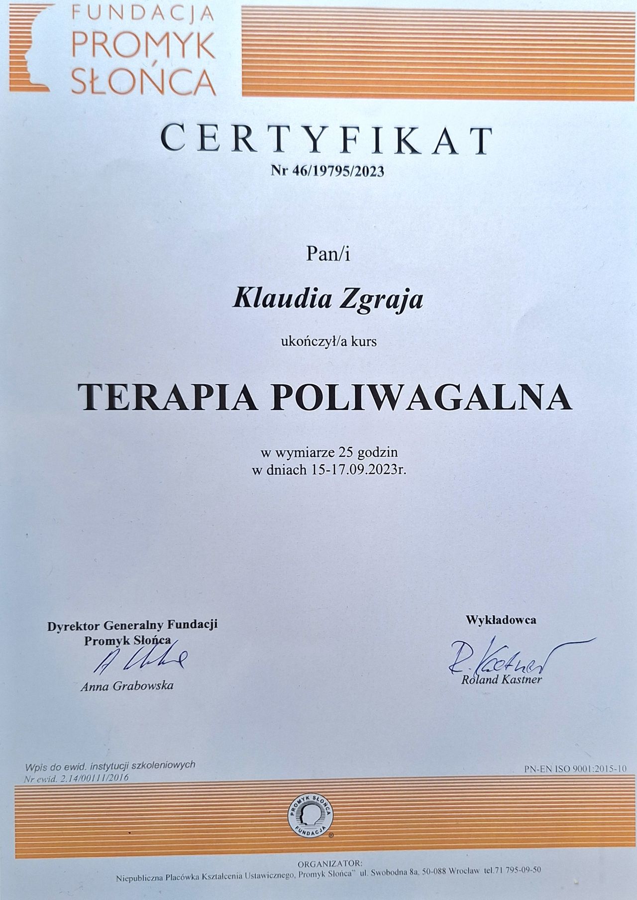 Jestem fizjoterapeutką, terapeutką czaszkowo – krzyżową, terapeutką zajęciową oraz trenerką umiejętności psychospołecznych.