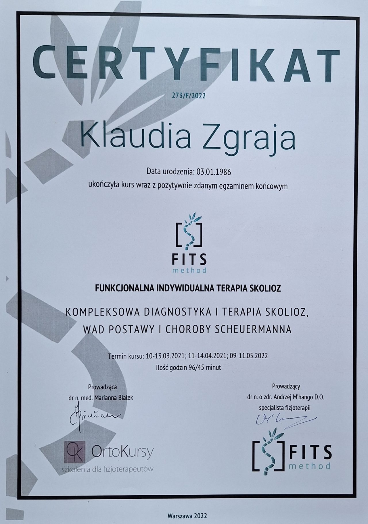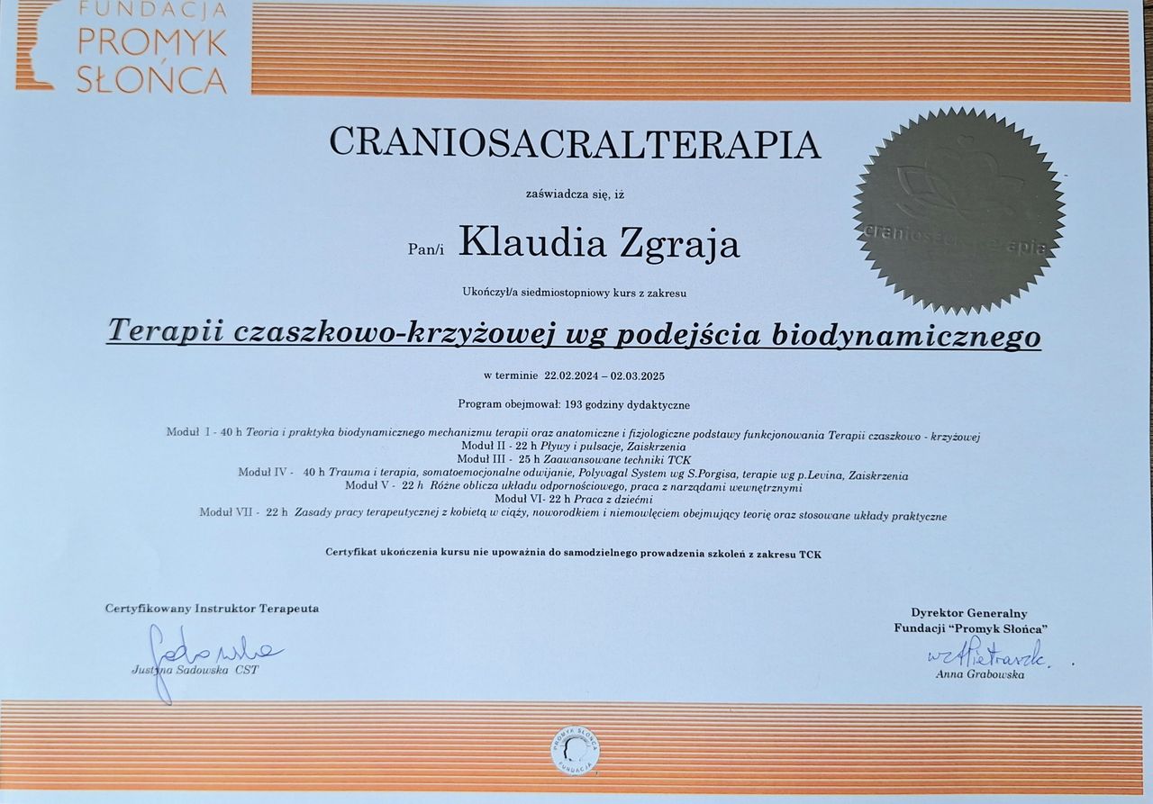 Jestem bardzo zadowolona z pierwszej wizyty u Pani Klaudii. Profesjonalne podejście, uważność i szczegółowy wywiad sprawiły, że poczułam się w dobrych rękach. Już po pierwszym spotkaniu zauważyłam ulgę, a plan terapii został jasno wyjaśniony. Zdecydowanie polecam!