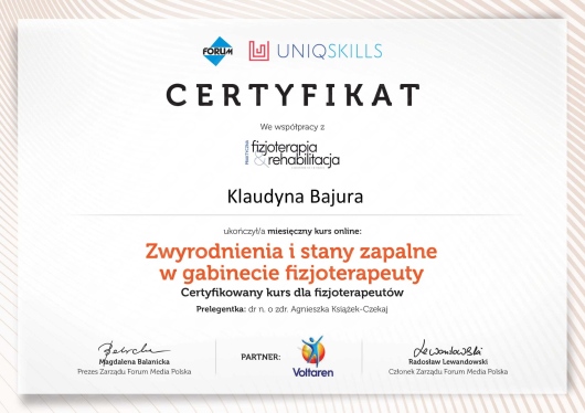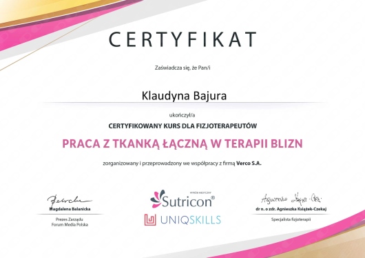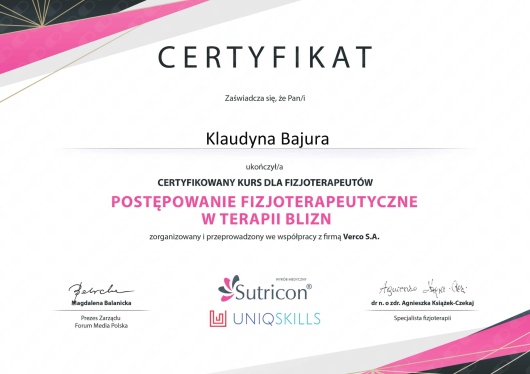 Jaki jest zakres porad oferowanych przez Klaudyna Bajura?Klaudyna Bajura to fizjoterapeuta. Na podstawie swojego doświadczenia i wykształcenia Klaudyna Bajura oferuje usługi takie jak: ćwiczenia indywidualne, masaż bańką chińską, Masaż leczniczy, masaż relaksacyjny, instruktaż ćwiczeń, Ćwiczenia czynne w odciążeniu UGLU, konsultacja fizjoterapeutyczna, masaż Kobido, masaż twarzy, Pinezkowanie twarzy.