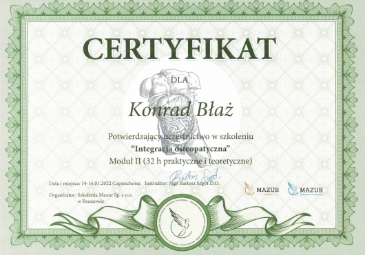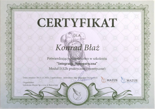 Dlatego każdemu polecam skorzystanie z jego usług, ze względu na indywidualne podejście do pacjenta, a także dużą skuteczność w działaniu.• Terapie Integralne • Fizjoterapia z wykorzystaniem technik osteopatycznych •
