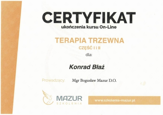 Przez ostatnie 2 lata chodziłem do wielu "specjalistów" z bólem w lędźwiach ale bezskutecznie. Na szczęście udało mi się trafić do Pana Konrada, który umiejętnie pokierował moim leczeniem i w ciągu kilku tygodni udało się mnie wyleczyć i ból ustał. Dziękuję!