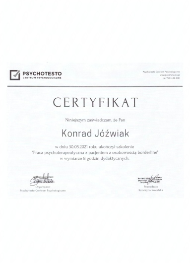 • Konrad Jóźwiak - certyfikowany specjalista psychoterapii uzależnień • konsultacja psychoterapeutyczna •