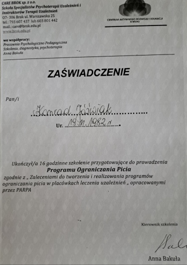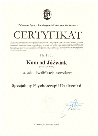 • Konrad Jóźwiak - certyfikowany specjalista psychoterapii uzależnień • psychoterapia uzależnień •