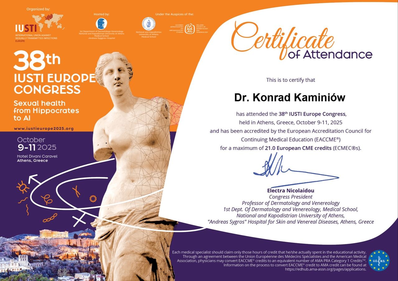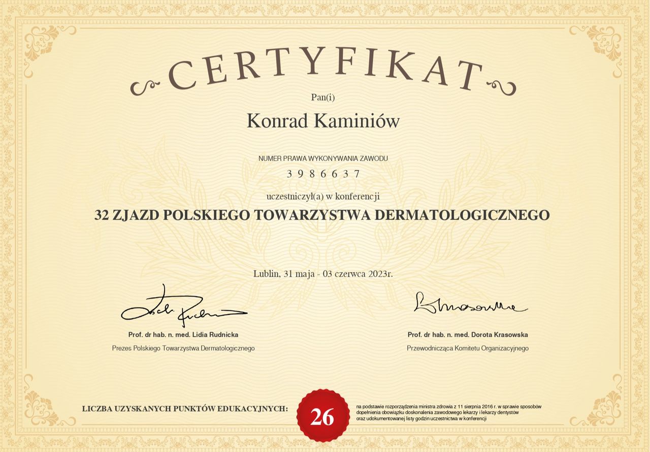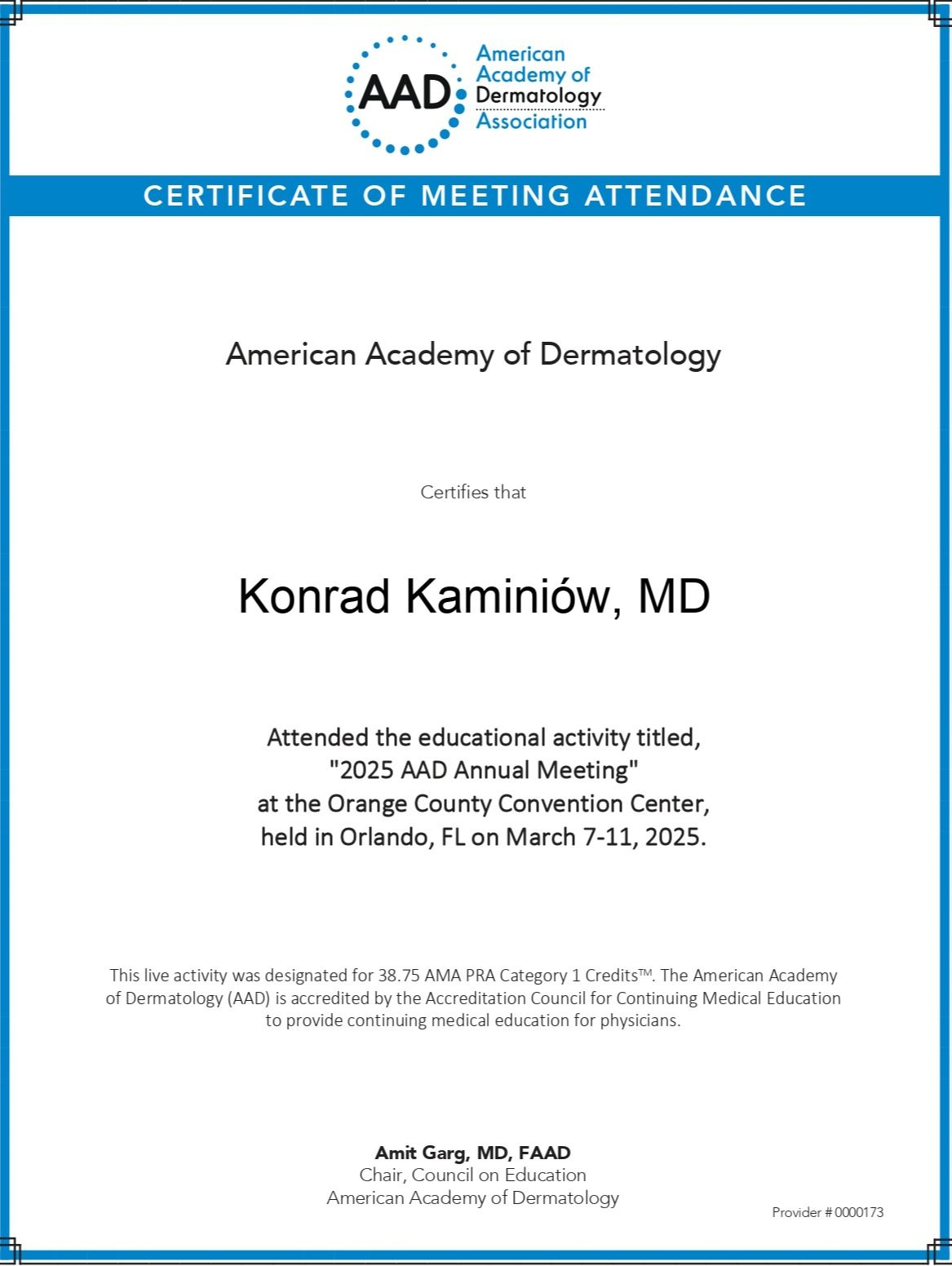 Absolwent studiów podyplomowych „Medycyna Estetyczna dla Lekarzy” realizowanych przez Akademię Górnośląską w Katowicach.