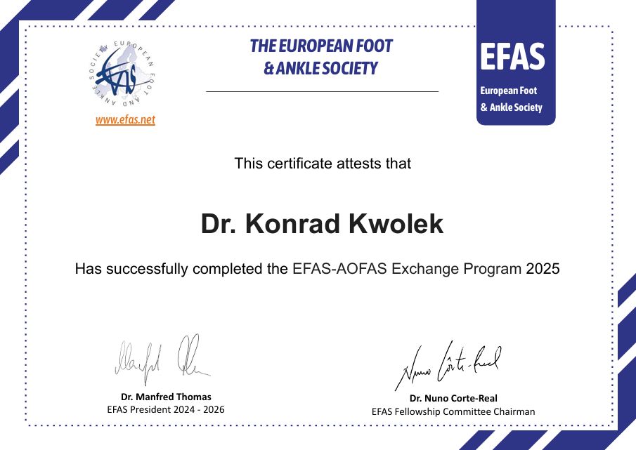 Konkretny, sympatyczny, z dużą wiedzą i doświadczeniem . W końcu ktoś konkretnie podszedł do mojego problemu, wyjaśnił dał zalecenia na przyszłość.. jeśli masz problemy ze stopą , stawem skokowym to tylko ortopeda Kwolek!