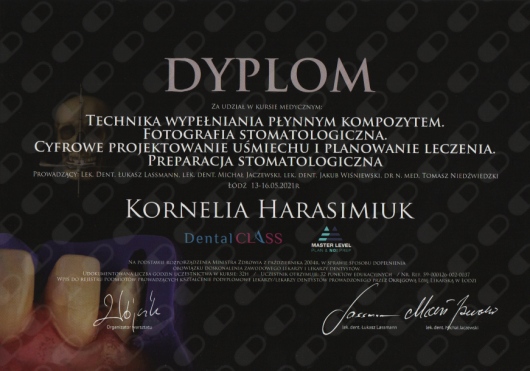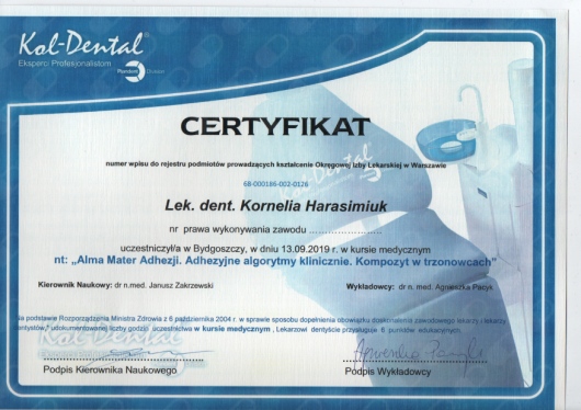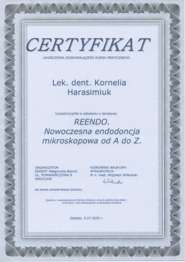 Pomimo ogromnego strachu i traumy przed dentystą zdecydowałam się na leczenie swoich zębów u doktor Harasimiuk. Cieszę się, że tu trafiłam. Pani doktor i pani asystentka wzorowo się mną zaopiekowały i zrobiły wszystko, aby zredukować mój stres. Dostałam pełny obraz stanu swoich zębów oraz dalszy plan leczenia. Pierwszy ząb wyleczony zupełnie bezboleśnie. Obie panie bardzo sprawnie i profesjonalnie współpracowały. Jestem mile zaskoczona i gotowa na kolejne wizyty. Polecam wszystkim osobom, które tak jak ja, panicznie się boją :)