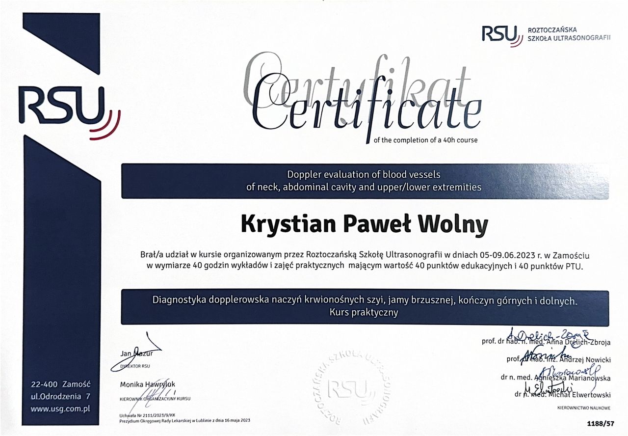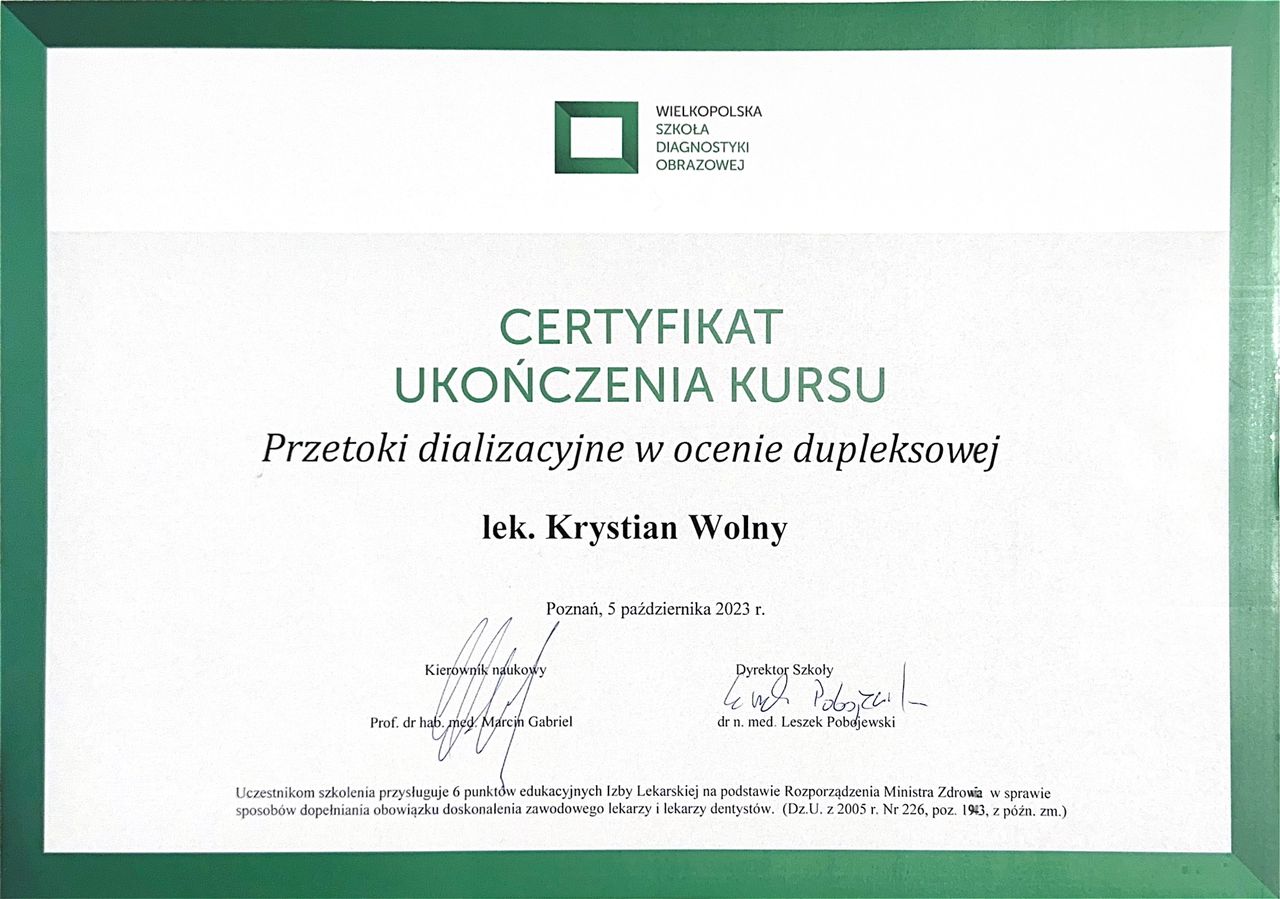 Nazywam się Krystian Wolny. Jestem lekarzem w trakcie specjalizacji z nefrologii. Na co dzień pracuję w Oddziale Klinicznym Nefrologii, Transplantologii i Chorób Wewnętrznych Uniwersyteckiego Szpitala Klinicznego w Poznaniu. Równolegle pełnię funkcję asystenta na Uniwersytecie Medycznym im. Karola Marcinkowskiego w Poznaniu, którego jestem absolwentem.