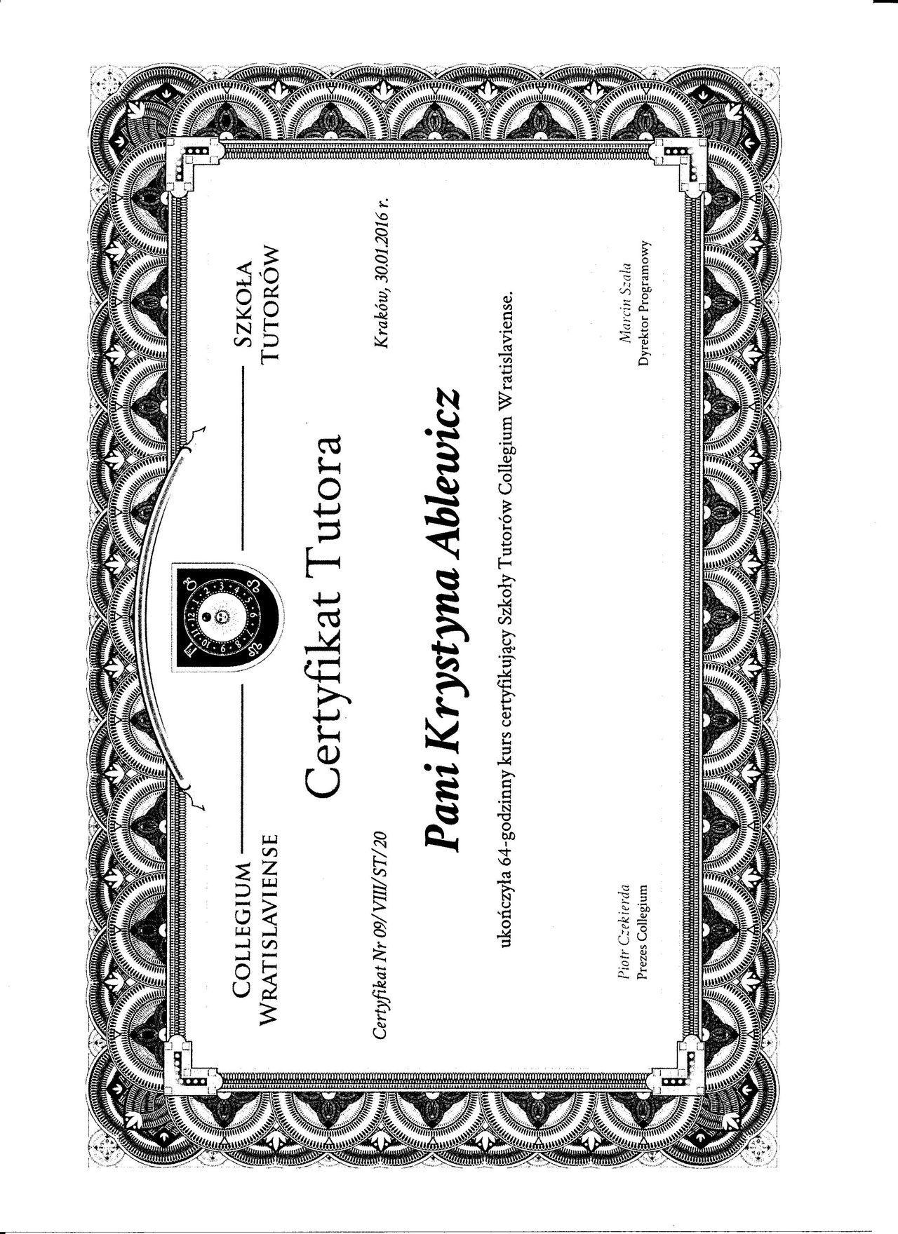 Dzięki jasnemu przekazowi, ciekawym przykładom i umiejętnemu moderowaniu dyskusji, zajęcia są wartościowe zarówno pod kątem rozwoju zawodowego, jak i osobistego. Pani Krystyna motywuje do refleksji, inspiruje do wprowadzania nowych rozwiązań w pracy oraz pomaga spojrzeć na trudne sytuacje z innej perspektywy.
