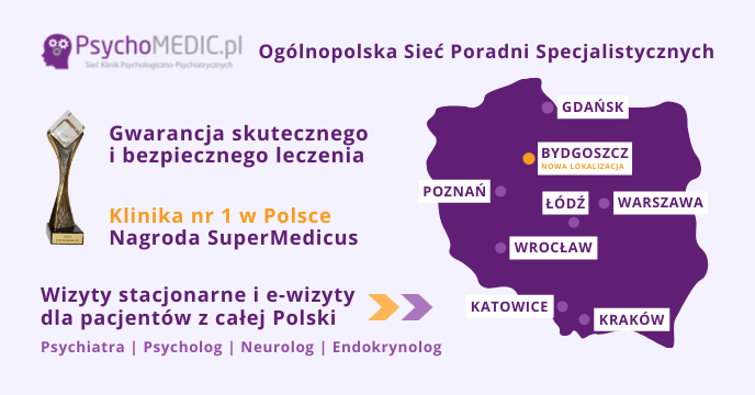 NZOZ PsychoMedic.pl Sieć Klinik Psychologiczno - Psychiatrycznych. W naszych klinikach w całej Polsce oraz poprzez naszą platformę PsychoMedic.online zaufani specjaliści przez 7 dni w tygodniu towarzyszą Ci w procesie zmiany, wykorzystując