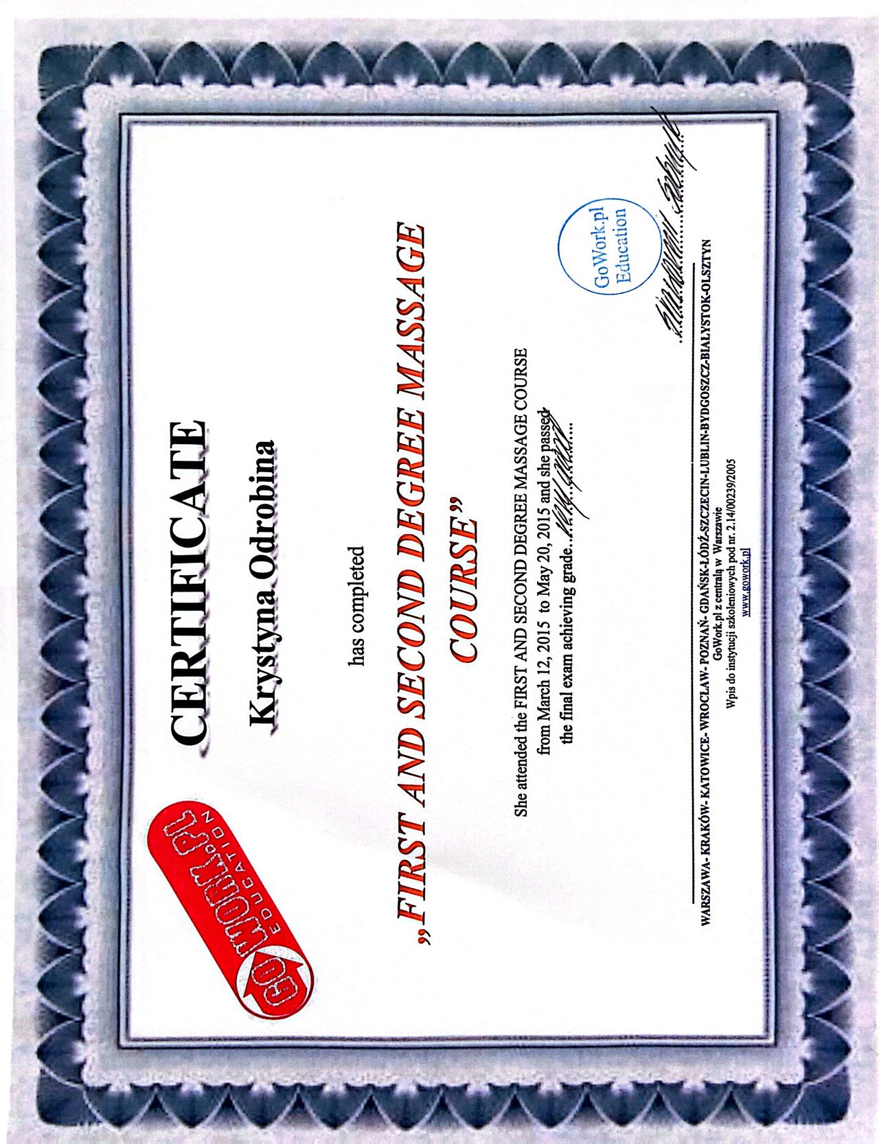 Wizyta u pani osteopatki była niezwykle pomocna. Odczułam znaczną ulgę w bólu, a przy tym wszystko zostało dokładnie wyjaśnione-skąd mogą brać się moje dolegliwości i jak mogę im zapobiegać w przyszłości. Pani Krystyna ma dużą wiedzę, profesjonalne i uważne podejście a rozmowa z nią doprowadziła mnie do ważnych życiowych refleksji. Czułam, że jestem w naprawdę dobrych rękach. Serdecznie polecam każdemu, kto szuka profesjonalnej i skutecznej pomocy!
