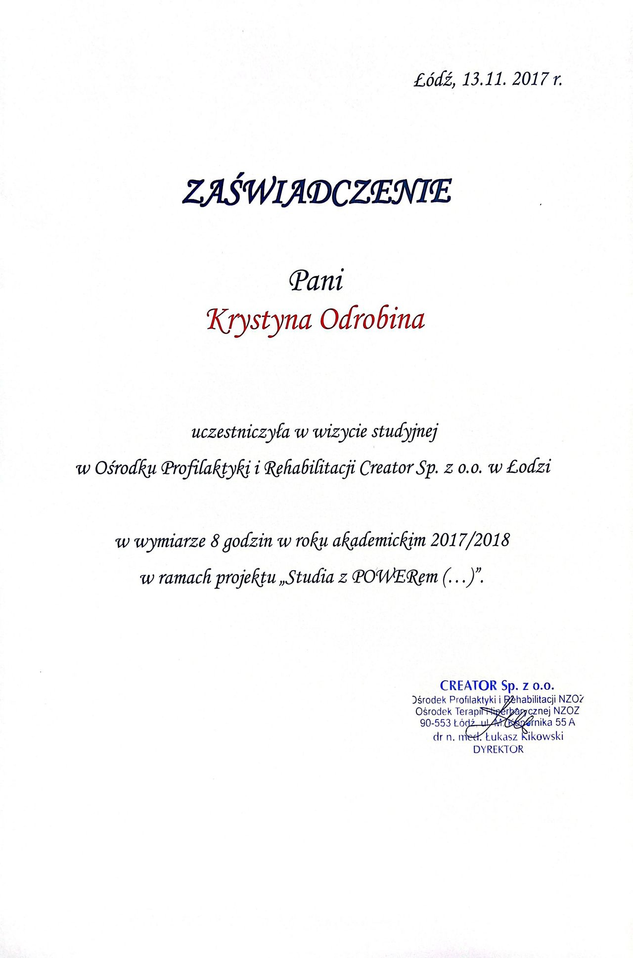 Regularnie korzystam z pomocy Pani Krysi Odrobiny i z pełnym przekonaniem ją polecam. Pomogła mi zarówno w problemach jelitowych, jak i w przewlekłych napięciach odcinka szyjnego. Łączy osteopatię z akupunkturą, co u mnie daje świetne efekty. Profesjonalna, uważna i bardzo zaangażowana w potrzeby pacjenta. Nie boi się wyzwań i trudnych przypadków. Ogólnie wspaniała jako czlowiek.