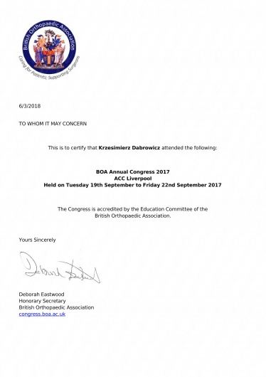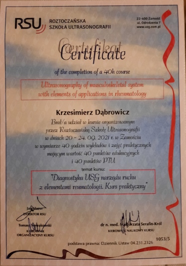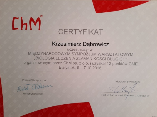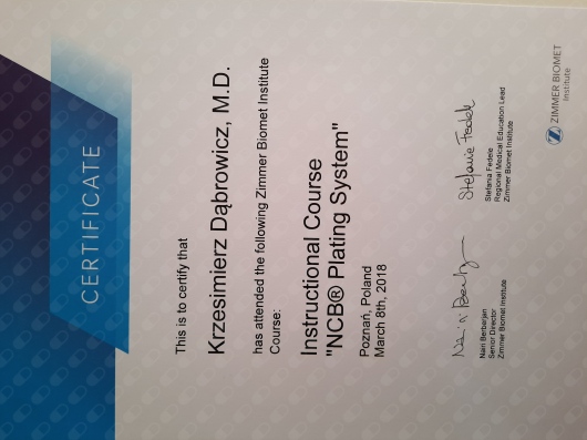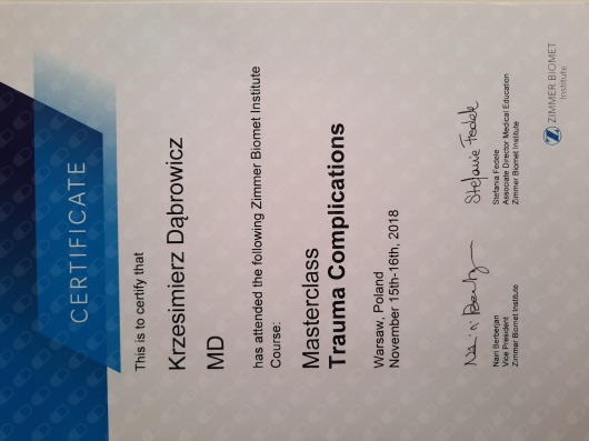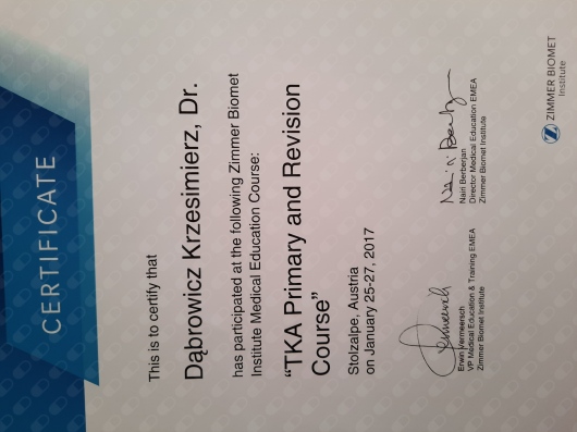 Specjalista Ortopedii i Traumatologii Narządu Ruchu.