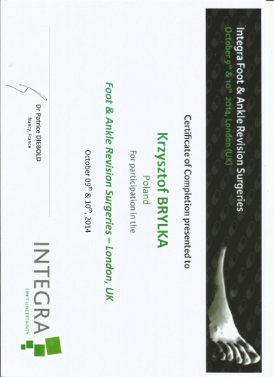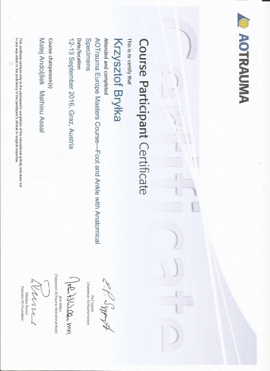Chirurg stopy, specjalista ortopedii i traumatologii narządu ruchu Członek Europejskiego Towarzystwa Stopy i Stawu Skokowo-Goleniowego (EFAS) oraz Polskiego Towarzystwa Stopy i Stawu Skokowego (PFAS). Członek GRECMIP (Groupe de Recherche et d'Etude en Chirurgie Mini-Invasive du Pied) - towarzystwa zajmującego się rozwijaniem i propagowaniem technik miniinwazyjnych w chirurgii stopy Współtwórca Poradni Chorób Stopy w Warszawie – pierwszego w centralnej Polsce ośrodka zajmującego się leczeniem wyłącznie chorób oraz urazów stawu skokowego i stopy. Szczególnie interesuje się miniinwazyjnymi operacjami przodostopia, w tym metodą MICA. Instruktor i współtwórca Centrum Szkoleniowego z chirurgii stopy na Polskę i Europę Środkowo-Wschodnią. Wiedzę i doświadczenie zawodowe w zakresie chirurgii stopy i stawu skokowego zdobywał podczas wielu staży i kursów zagranicznych m.in. we Francji (Bordeaux, Nancy, Essey Les Nancy oraz Lyon), Holandii (Nijmegen), Szwajcarii (Liestal oraz Zurych i Genewa), Włoszech (Vicenza). Autor i współautor wielu publikacji o tematyce ortopedycznej oraz wystąpień na konferencjach naukowych w Polsce i za granicą. Szanowni Państwo, w przypadku braku terminów w kalendarzu wizyt proszę dzwonić do Poradni Chorób Stopy nr tel