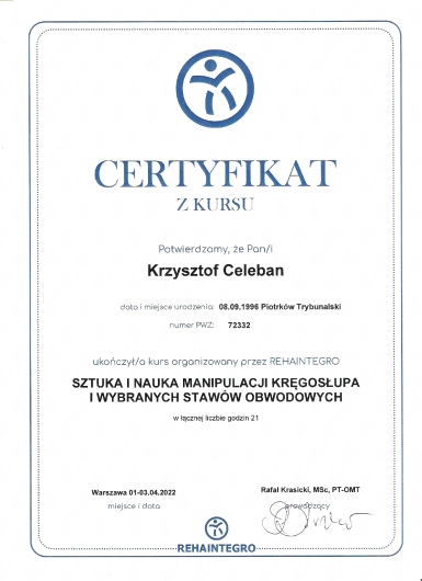 Dziękuję, wcześnie konsultowane problemy z kręgosłupem daję przestrzeń do dobrych rezultatów