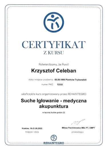 Trafiłem do Krzysztofa i Damiana w bardzo ostrym stanie rwy kulszowej – ból był tak silny, że trudno mi było chodzić, a każdy ruch sprawiał ogromny dyskomfort. Dzięki ich intensywnej, profesjonalnej i przede wszystkim skutecznej pracy już po dwóch tygodniach mogłem pojechać na upragniony urlop i bez bólu chodzić po górach. Panowie wykazali się ogromną wiedzą, doświadczeniem i empatią. Każdą wizytę prowadzili z pełnym zaangażowaniem, dokładnie tłumacząc przyczyny dolegliwości i sens wykonywanych ćwiczeń. Ich podejście było w pełni indywidualne, racjonalne i uczciwe – żadnego naciągania na kolejne wizyty, tylko realna pomoc. To fachowcy z pasją, sercem i prawdziwą troską o pacjenta. Dzięki nim odzyskałem sprawność, spokój i radość z ruchu. Z całego serca polecam!