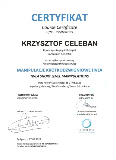 • Manipulacje HVLA kręgosłupa i stawów obwodowych.