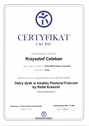 Polecam! Pan Krzysztof przeprowadził szczegółowy wywiad dotyczący problemu, z którym się zgłosiłam. Pomógł mi praktycznie od ręki oraz polecił ćwiczenia do domu. Jestem bardzo zadowolona z wizyty.